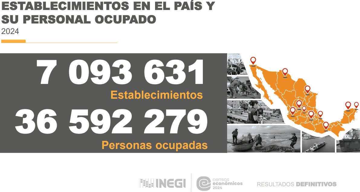 https://twitter.com/INEGI_INFORMA/status/1948511134795137331Los #CE2024 contaron 7.1 millones de establecimientos económicos en🇲🇽en los cuales estaban ocupadas 36.6 millones de personas; esto incluye comercios, fábricas, minas, pesquerías, servicios, vivienda con actividad económica, empresas constructoras, de transportes, etc.