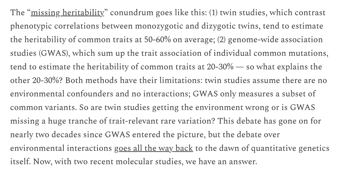 It's a short paper and it surveys three core findings from the past decade of intelligence genetics. These sections follow a structure that I would cheekily call ... "make a bold claim in the title, then walk it back in the text".