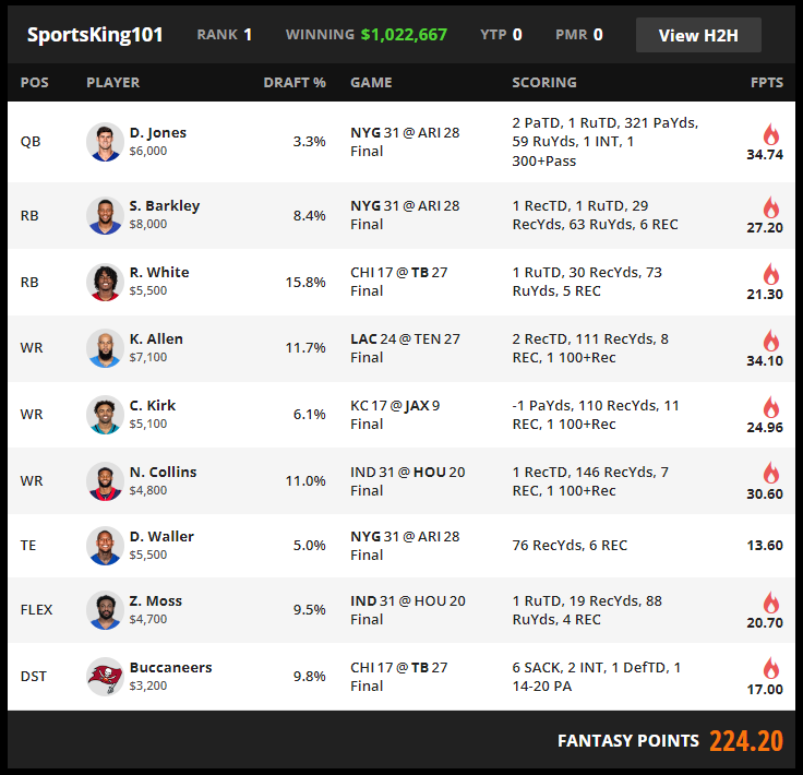 Last night, SportsKings101 won $1M+ on just one $20 lineup