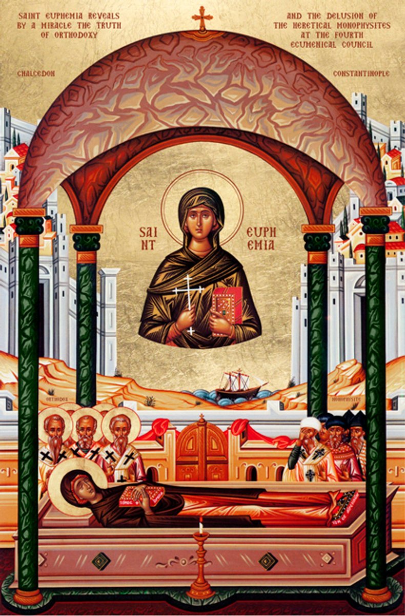Saint Euphemia was a virgin from a noble family of the city of Chalcedon who was savagely tortured and martyred during the Diocletianic persecution of 303.