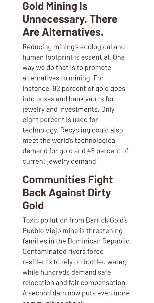 And environment. Gold mining is a completely unnecessary activity, globally. It's about finance, not technology. Some local populations get displaced, poisoned; some killed, enslaved. Some do it for survival, making 20$/day while companies make billions.