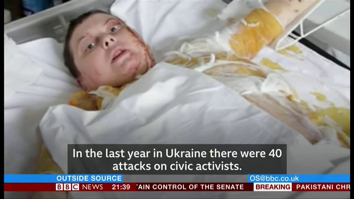 Le 31 juillet 2018, Kateryna Handziouk se faisait asperger d’acide sulfurique devant son domicile de Kherson. Après de longues semaines à l’hôpital, elle a succombé à ses blessures le 4 novembre. 2/