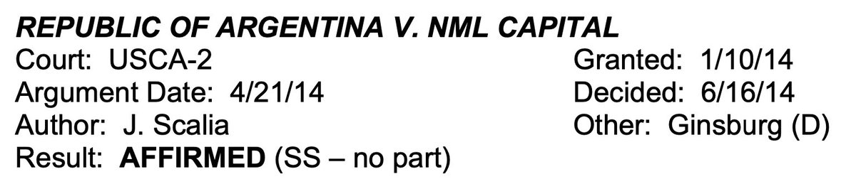 June 2014, the U.S. Supreme Court denied a petition filed by the Republic to hear a case brought by Paul Singer’s NML Capital who was trying to recoup its investments in defaulted Argentine sovereign debt.
