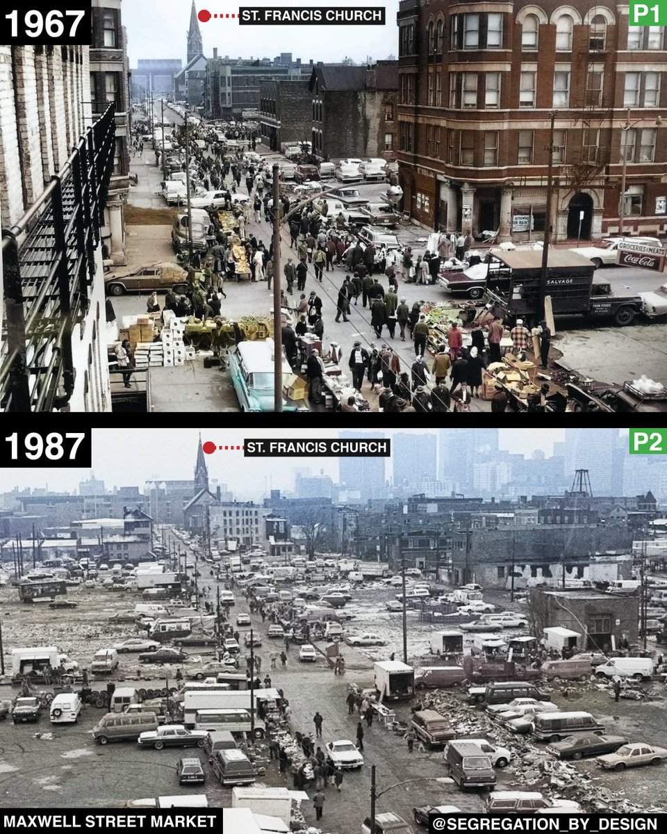 The Mecca was one of thousands of residential buildings destroyed during federally-funded “urban renewal and slum clearance,” along with the thousands more destroyed for the nearby Dan Ryan Expressway.