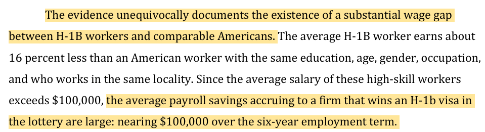 The study found companies pay H-1Bs 16% LESS than comparable American workers.