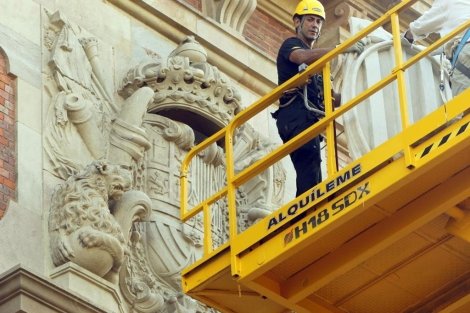 La pintura representa la llegada de Colón a Barcelona y su audiencia con oos Reyes Católicos. Borrar la historia con la excusa de que fue cuando la extrema derecha. Como con Felipe V.