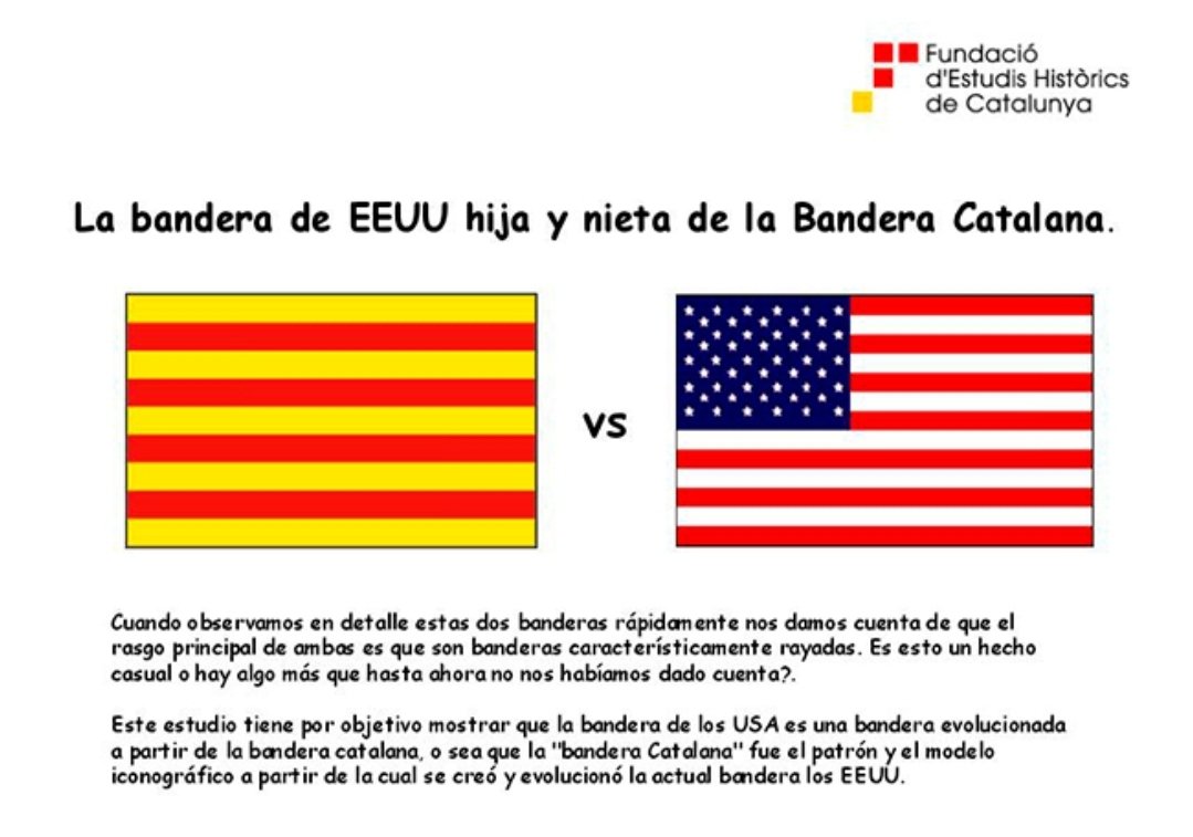 Y es más rotundo: "la bandera de los EEUU sólo y únicamente tiene a la catalana como trasfondo (…) Lo que queda de manifiesto es que la bandera americana es un calco evidente de la catalana“. Y para ello se crea un árbol vexilológico de la evolución de la bandera americana.