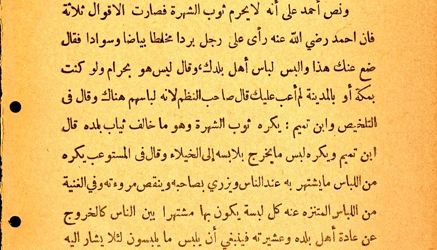 Ibn Baṭṭāl (d. 449) mentions that “in a given period, a person should dress according to the dress of his land, as long as it is not sinful to do so, since dressing in a contrary manner is a form of notoriety.”