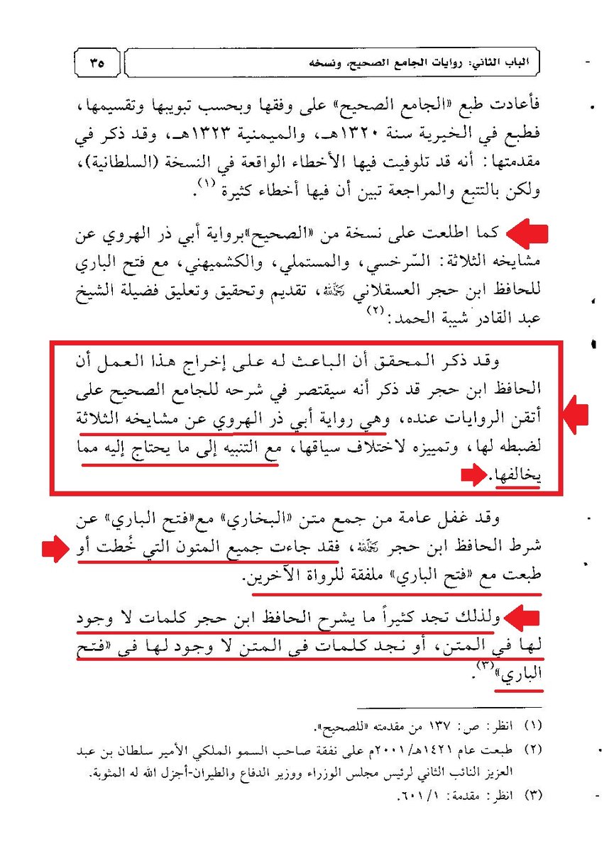 ابن حجر العسقلاني عندما شرح كتاب صحيح البخاري قال أنه وجد 13 نسخة مختلفة فقام بدمج هذه النسخ بإعتماد نسخة قياس وهي نسخة أبي ذر الهروي عن شيوخه الثلاثة (السرخسي والمستملي والكشميهني)