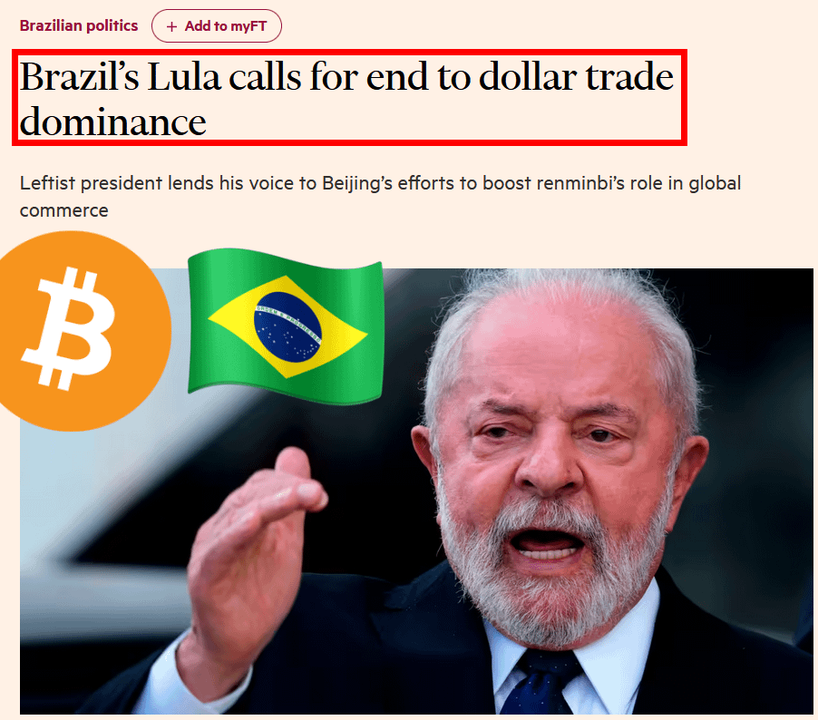 🇧🇷Lula's announcement is just another signpost signaling the world's moving on from the US Dollar system.❌