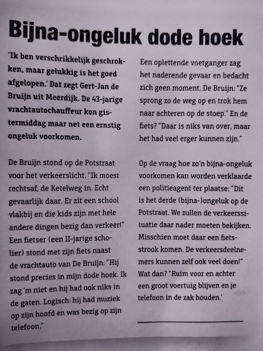"Als een fietser wordt aangereden door een vrachtauto die naar rechts afslaat, gebeurt dat vaak doordat de fietser zich in de dode hoek bevindt."