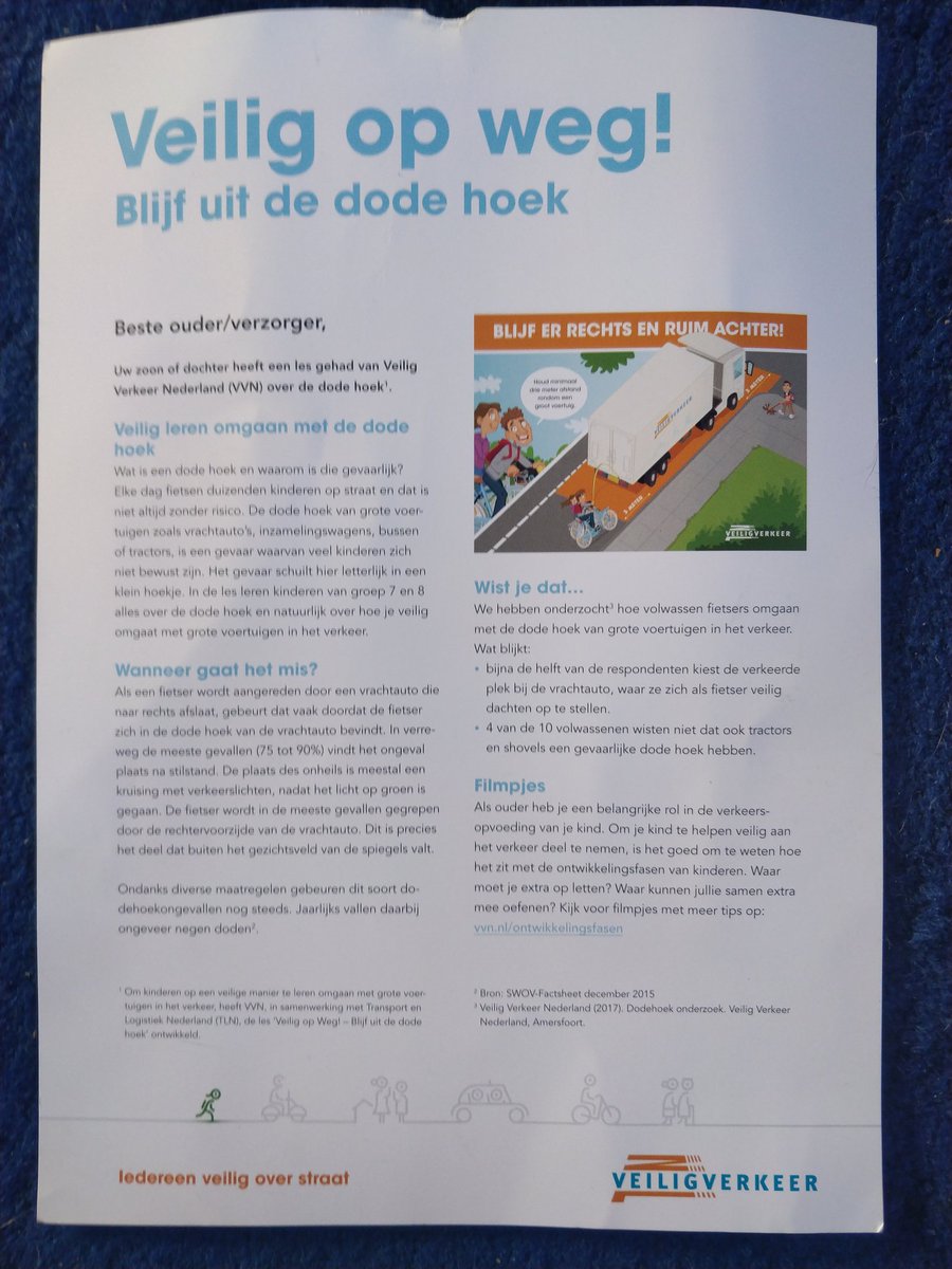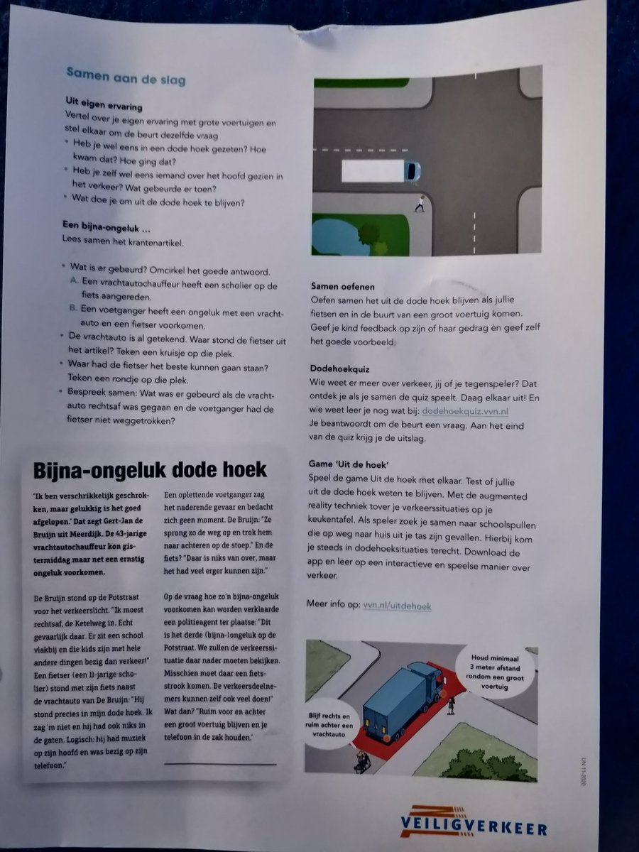 Die van 9 komt thuis met een opdracht van Veilig Verkeer Nederland. Over de dode hoek...