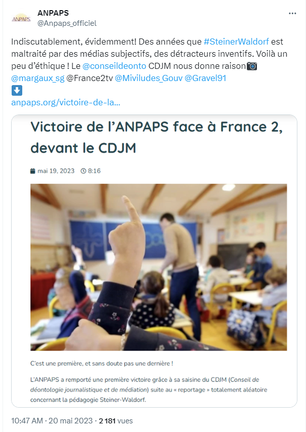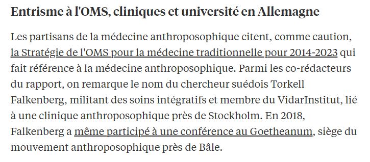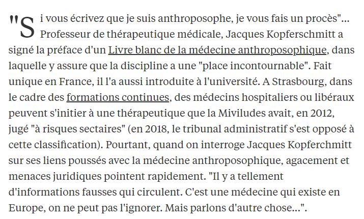On peut noter que le médecin qui a signé la préface du Livre blanc de la médecine anthroposophique semble très ouvert aux débats via la première phrase de l'article ci joint.