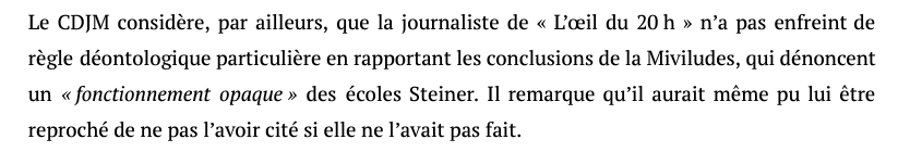 Si on lit l'avis en détail, je ne vois pas ou se trouve la victoire ainsi revendiquée ? Sur la totalité des points mentionnés beaucoup sont rejetés, pour certains il est indiqué que le reportage aurait pu avoir un problème s'ils n'avaient pas été cités.
