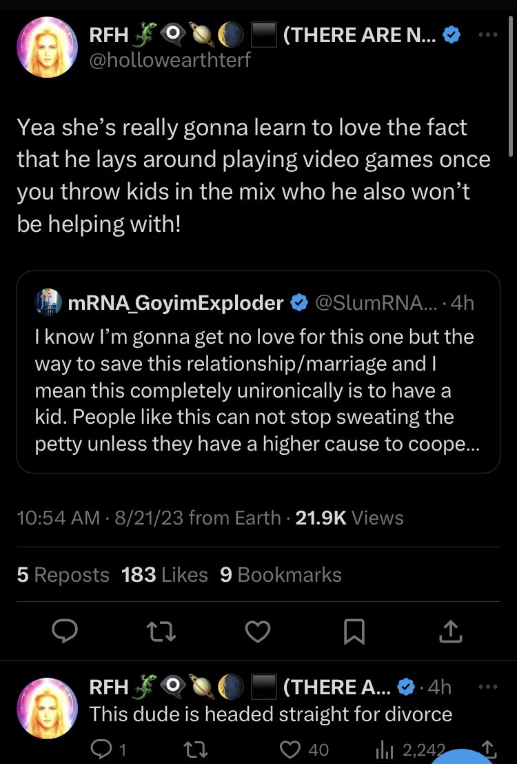 https://twitter.com/curiousbunnie12/status/1664689183431053324It manifests differently but it’s ultimately the same thing. Male incels want the pure young sinless virgin so that they can’t be compared to any other man (I don’t want to compete!) femcels want you to close your eyes around other women (I don’t want to compete!)