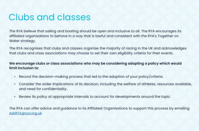 “We would encourage club and class associations who may be considering adopting a policy which would limit inclusion to record the decision-making process and consider wider implications”. 2/