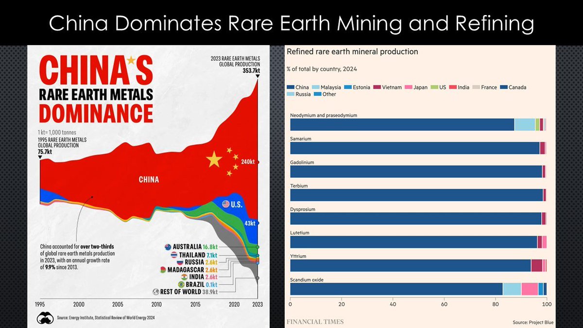 ◾️ For many specific rare earths, China’s share of global production of refined REE is a staggering 95% to 100%.