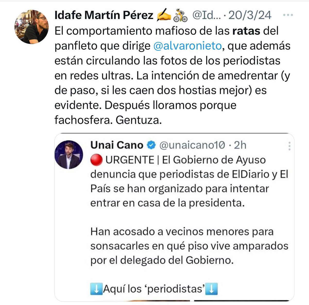 https://twitter.com/alejandro99mm/status/1638873396942389249Me ha bloqueado pero me había espetado esta sandez.