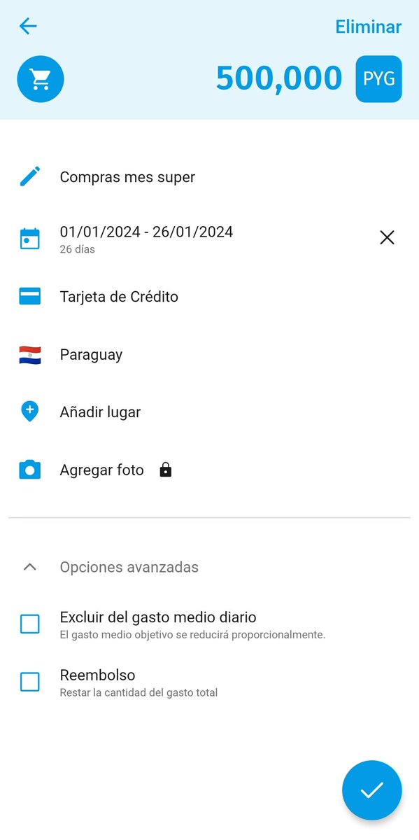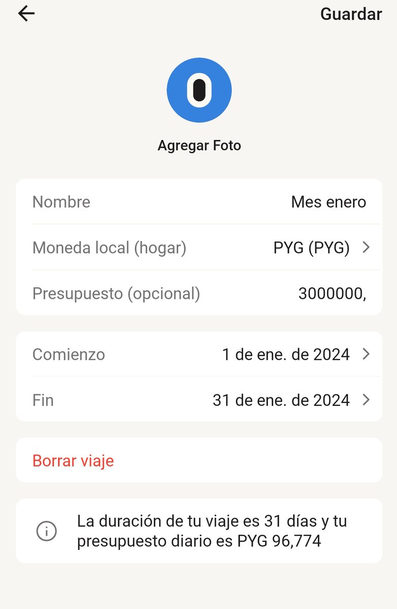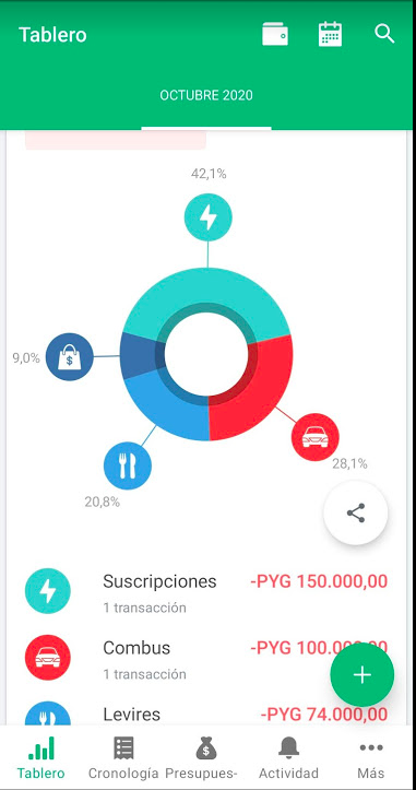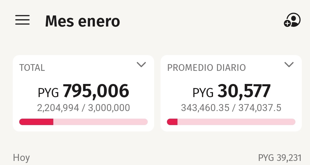 Para tu viaje/ mes , ahí te va a decir cuánto podes gastar por día, yo saco los fijos y ahí voy cargando cuando cargo combus, me compro algo, etc .