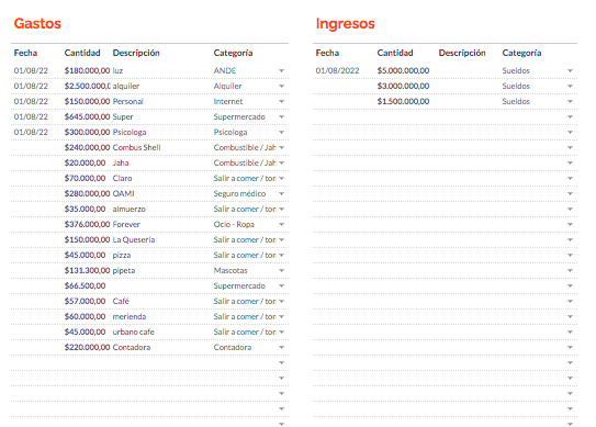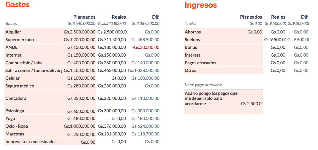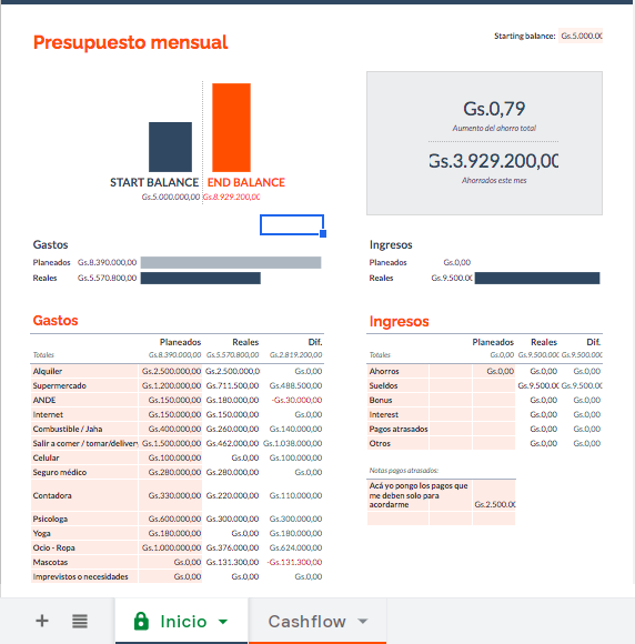 Les comparto mi planilla para que se puedan guiar, se ven los ingresos y los gastos y el ahorro mensual, no se donde la conseguí esta, la usé un tiempo y ahora uso otra. La idea es hacerlo un par de meses y poder entender sus gastos y en qué están gastando más de lo planeado+