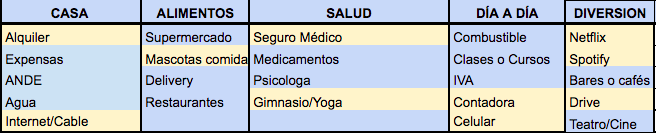 Pasamos a los gastos VARIABLES pero necesarios (los prescindibles son deliverys y salidas), ANOTA los gastos que tenes variables. Si pagas a principio de mes separalo.