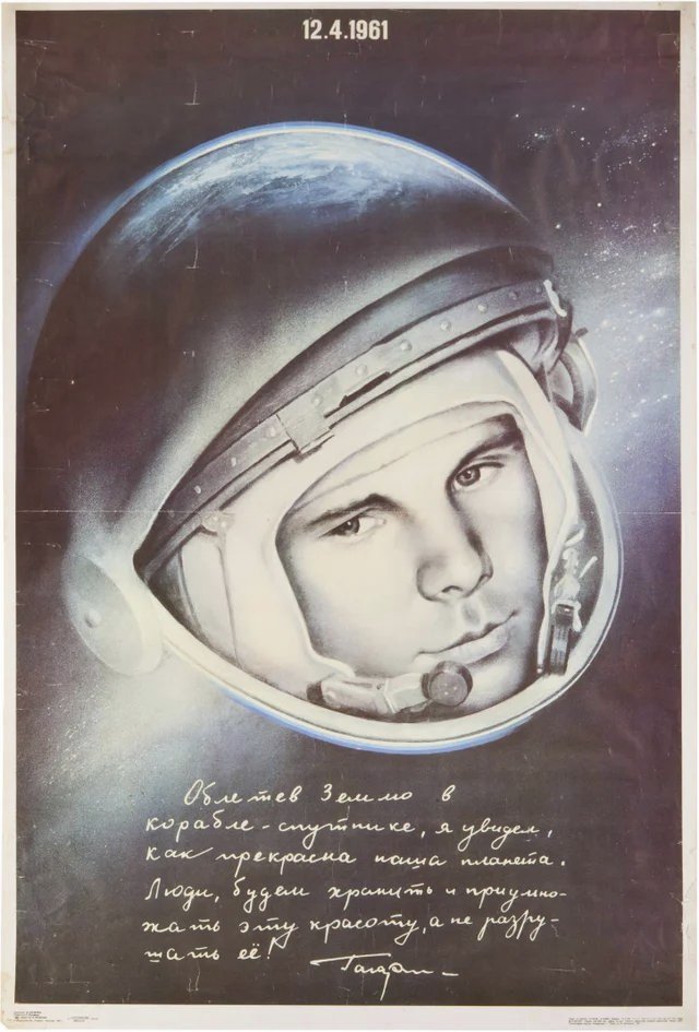 "Orbiting Earth in the spaceship, I saw how beautiful our planet is. People, let us preserve and increase this beauty, not destroy it!" Yuri Gagarin poster, 1967