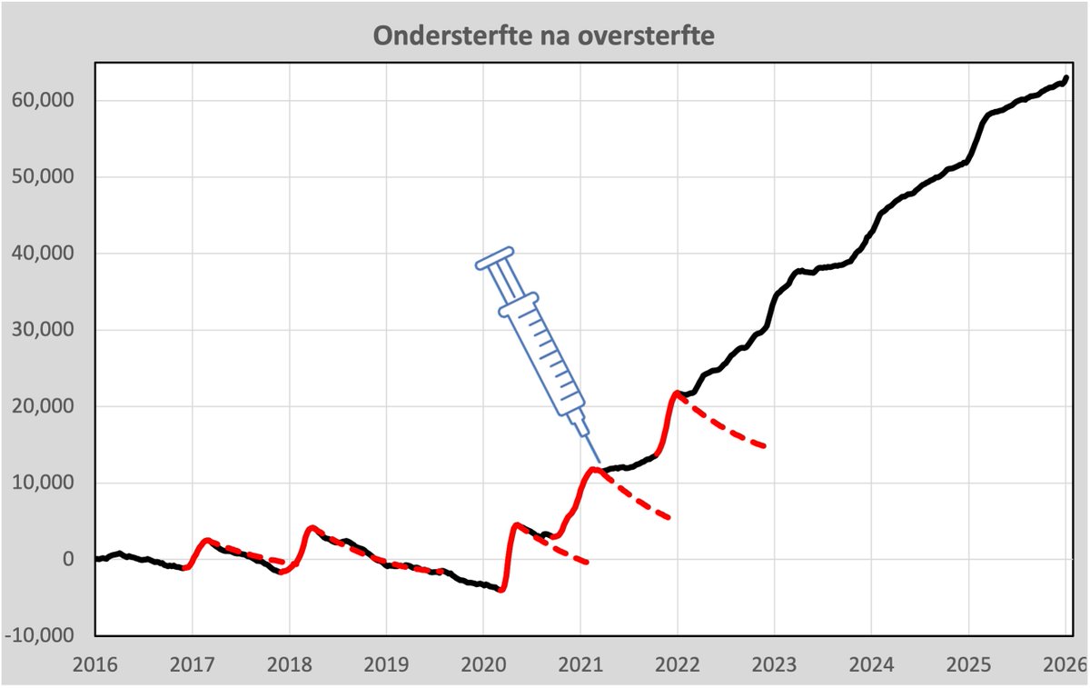 De #oversterfte bouwt zich ongeremd verder op. VIJF maal zoveel oversterfte sinds vaccinatie als in het eerste volledige coronajaar. Dat zijn inmiddels zo'n 300 MH17's.