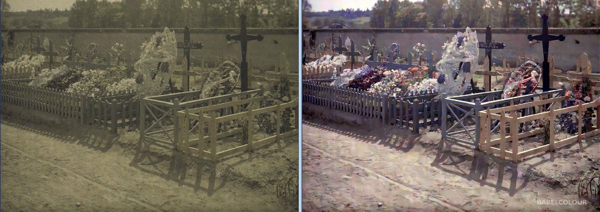 Periodically, for the benefit of new followers, I like to create a thread of "before and after" comparisons, to demonstrate what this Twitter feed is all about & how I clean + enhance early colour photography. I don't colourise the photos, I just enhance the colours already there