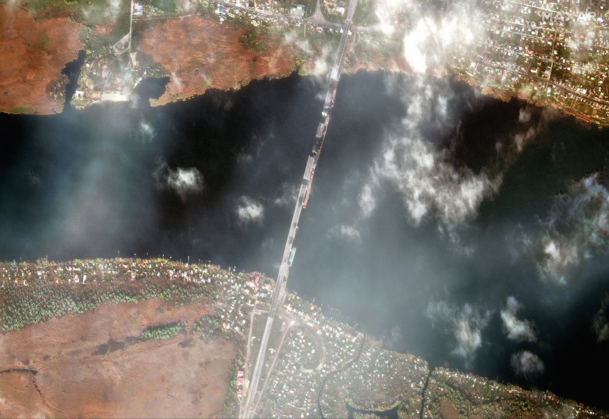Rusové odchází z pravého břehu Dněpru a pálí za sebou mosty. Tady několik satelitních snímků a jedno video, jak to po nich vypadá v Chersonské oblasti: