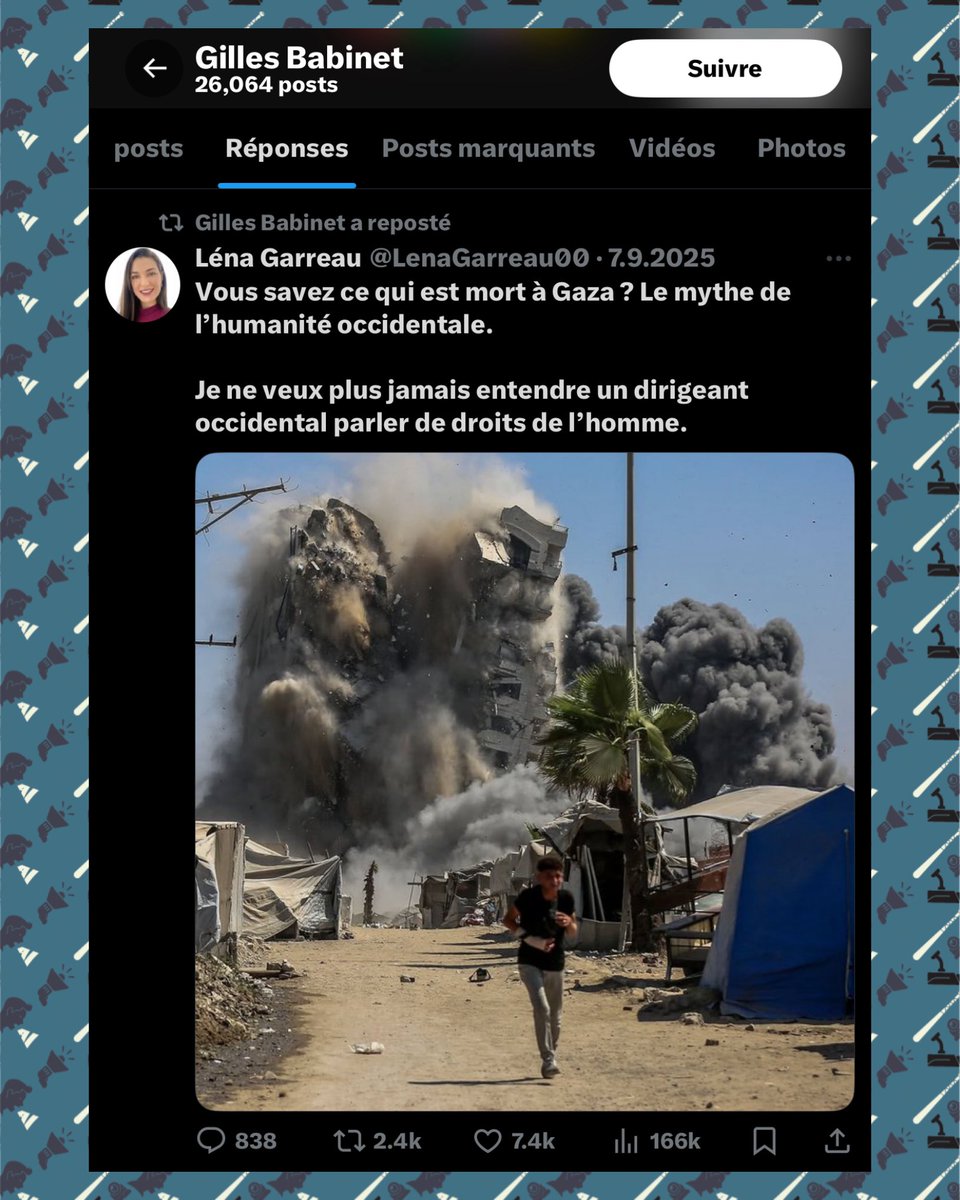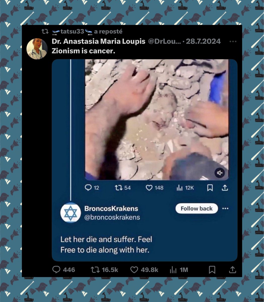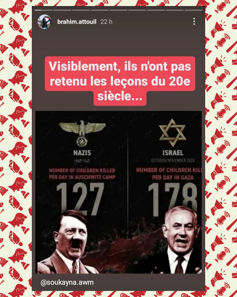 📌 Le 14 octobre 2023, plus d’une semaine après les massacres du 7 octobre, Radjaa Abou Dagga partageait sur son compte Facebook une vidéo négationniste. Celle-ci affirmait qu’aucun viol n’avait été commis ce jour-là et, plus frappant encore, que les 250 morts au Festival Nova étaient une invention (bilan final : 364 victimes), ajoutant que la seule preuve disponible résidait dans des interviews d’Israéliens affirmant que les « combattants de la liberté palestiniens » étaient « gentils » et « miséricordieux » (????).