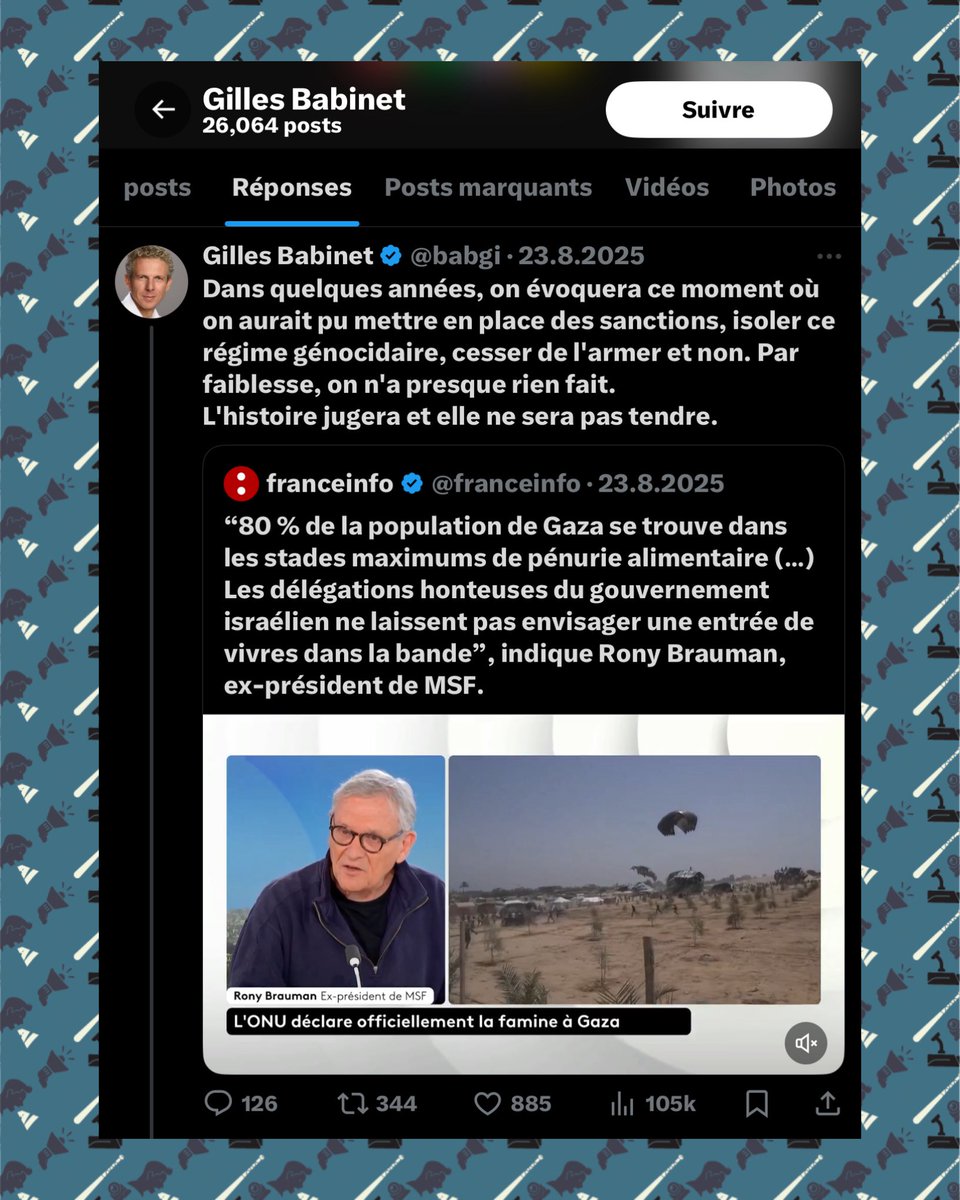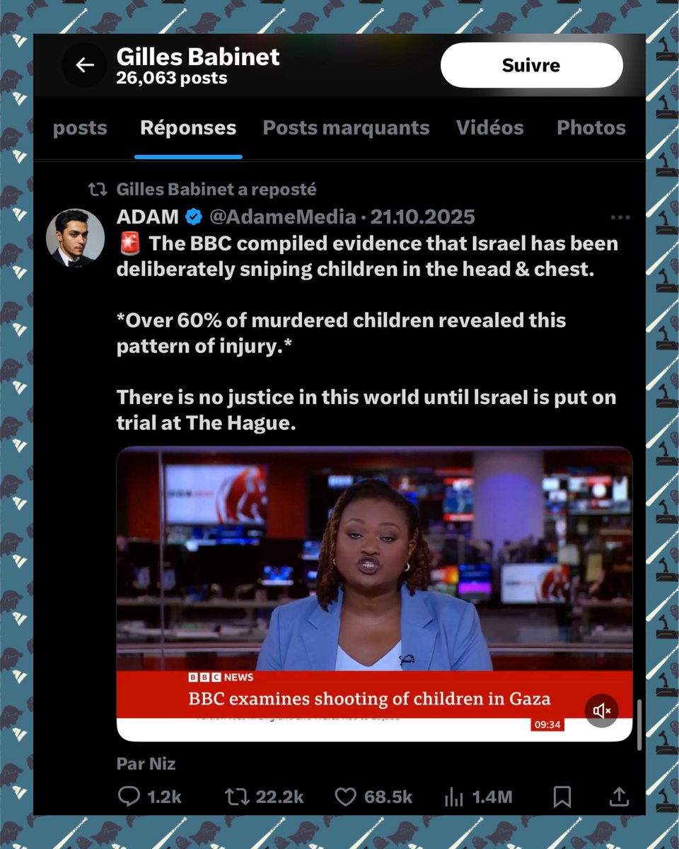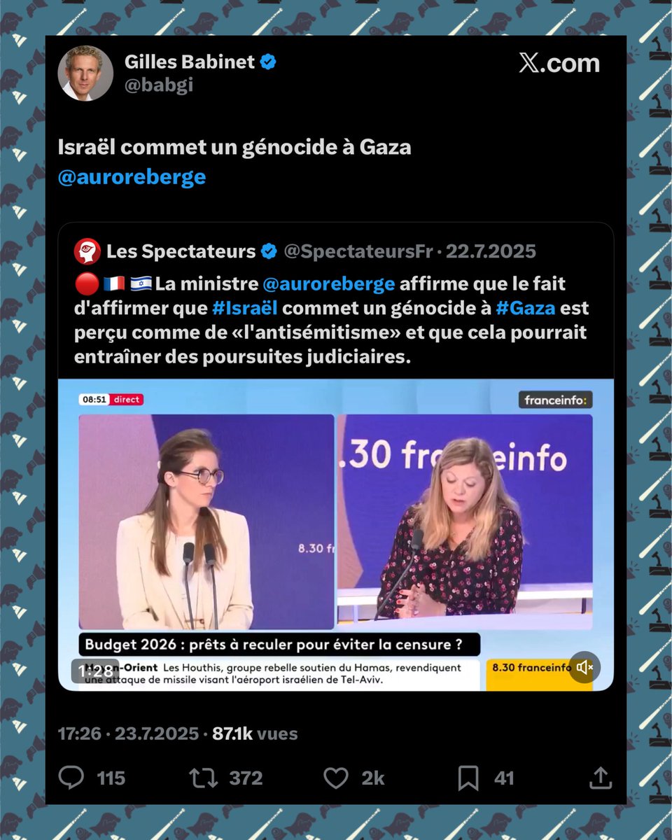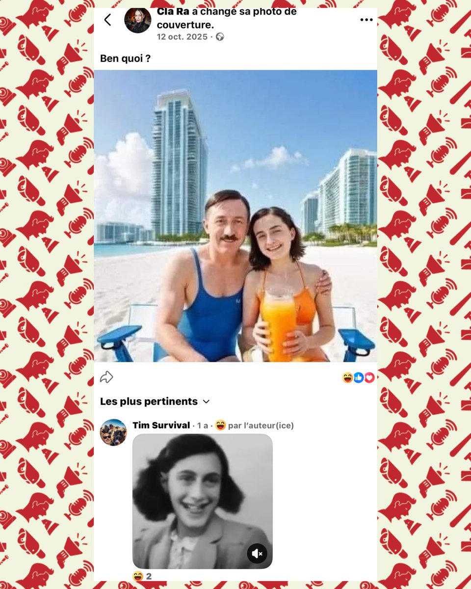 📌 Le 14 octobre 2023, plus d’une semaine après les massacres du 7 octobre, Radjaa Abou Dagga partageait sur son compte Facebook une vidéo négationniste. Celle-ci affirmait qu’aucun viol n’avait été commis ce jour-là et, plus frappant encore, que les 250 morts au Festival Nova étaient une invention (bilan final : 364 victimes), ajoutant que la seule preuve disponible résidait dans des interviews d’Israéliens affirmant que les « combattants de la liberté palestiniens » étaient « gentils » et « miséricordieux » (????).