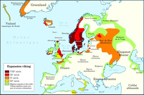 https://twitter.com/TFilastin/status/2009916534458618151Prirent possession de l'Islande en 860 (officiellement reconnue et consacrée par une assemblée), du Groenland en 982/3 avec Erik le Rouge qui y établit des colonies. Son fils Leif Erikson arriva sur la première terre de l'Amérique du Nord vers l'an 1000 : Hellul, plus connue