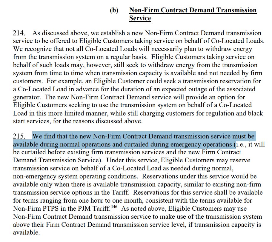 When FERC says "for example" the new non-firm service should be available during a generator outage, then follows that up with a clear statement that the service "must be available during normal operations," it's clear to me the command is more capacious than the example given.