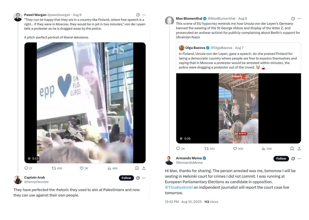 The video began to spread more widely in August 2025 when the protester was brought to court on charges of resisting a public official/police officer. He was fined €110.