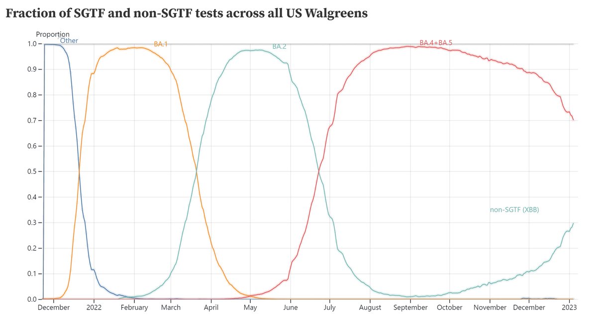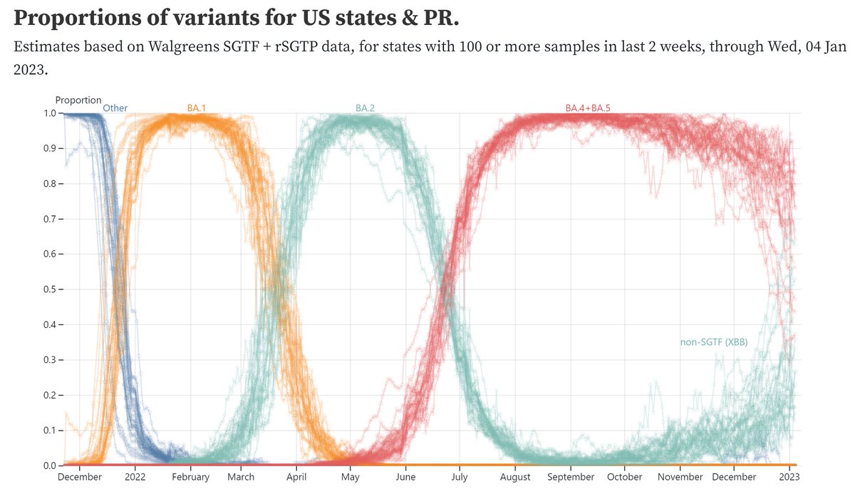 The latest SGTF data show XBB.1.5 is at ca 30% the first week of Jan 2023, which is in fact in line with this week's CDC nowcast (but the SGTF data is much more accurate, as it's actual data, not a nowcast, and based on a much larger sample size). observablehq.com/@andy-bloch/wa…