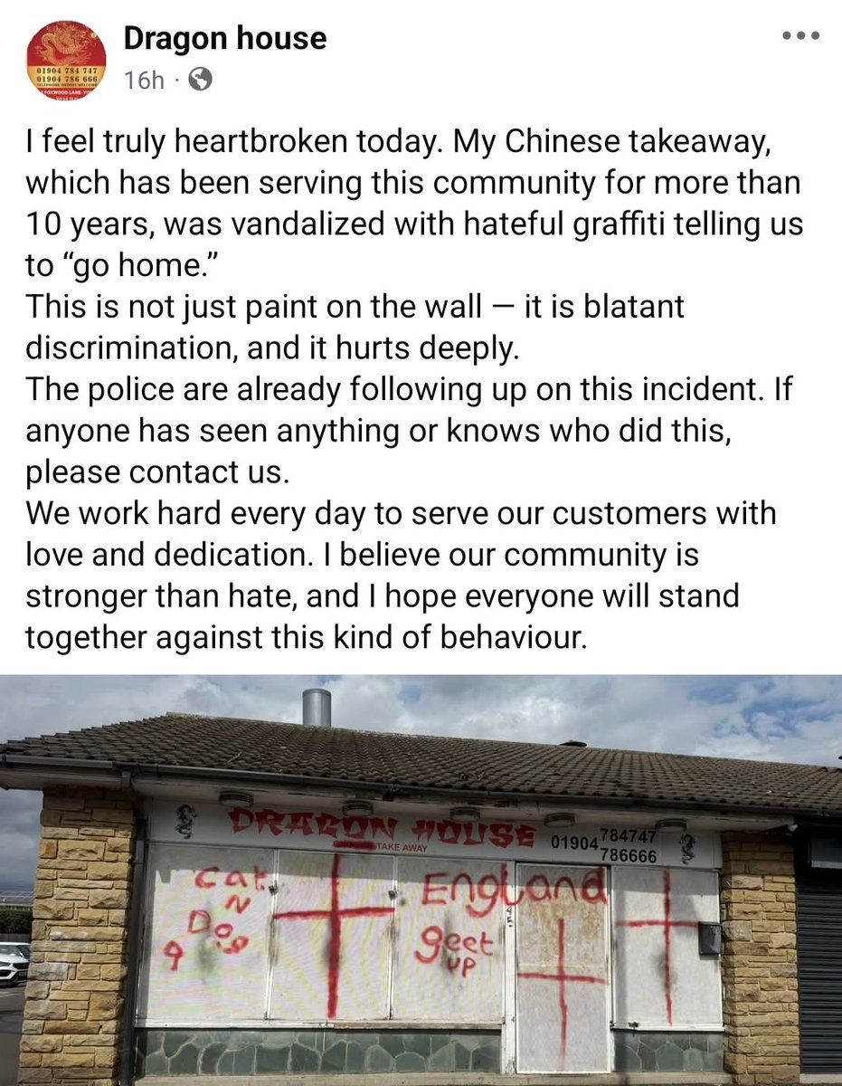 'Go home' graffiti on the Chinese takeaway.