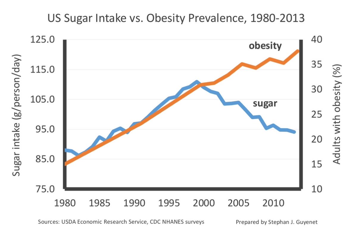 Seed oils slow the metabolic rate in multiple ways, and our consumption of them has been increasing almost 1:1 with the increased rate of obesity.