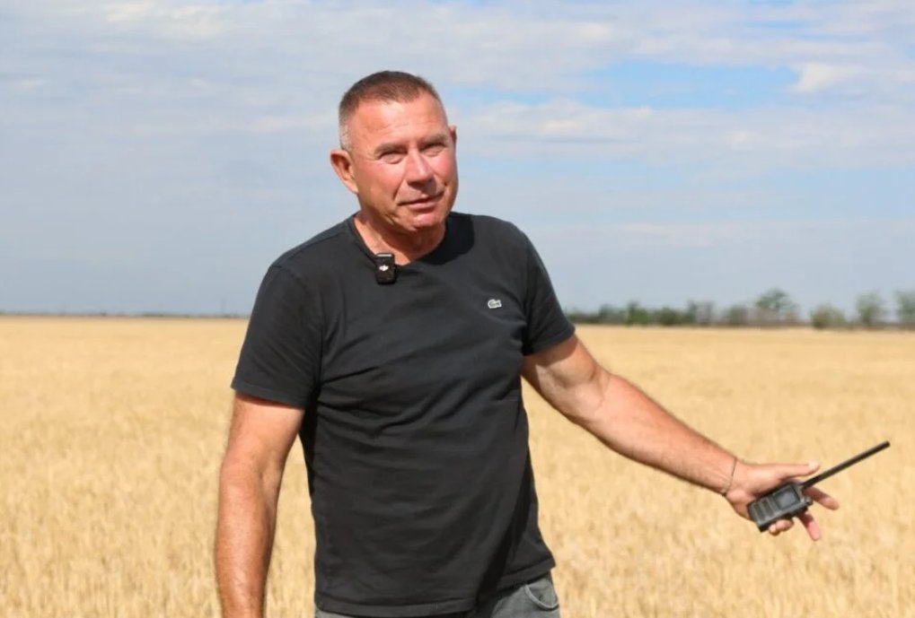 "Wir stehen auf dem Feld des Landwirts Alexander Gordienko, seit 30 Jahren Landwirt. Nur wenige Kilometer entfernt befindet sich die Front, am Himmel fliegen russische Drohnen, und die Ernte wird praktisch ausfallen.