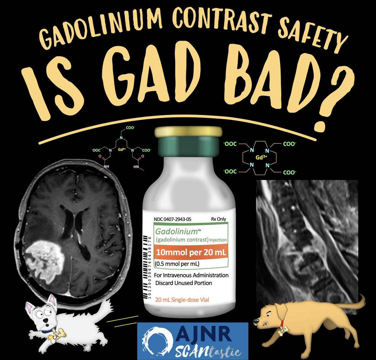 2/Whether or not to give gadolinium is a common question, as almost 1/2 of all MRI studies use gadolinium contrast. Contrast-enhanced imaging can help elucidate many different pathologies, including tumors, demyelinating disease, & infection