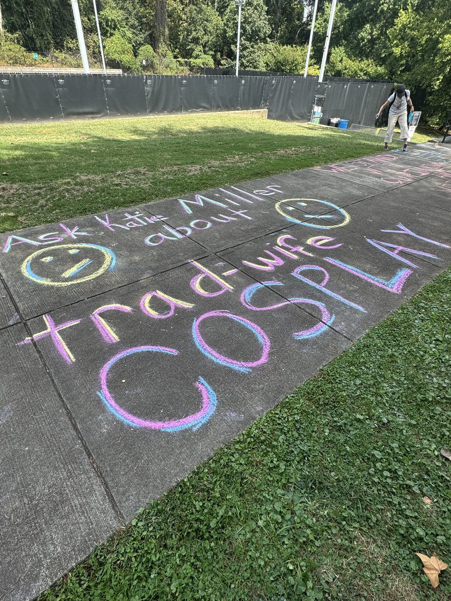 Just four days after the political assassination of Charlie Kirk, @arlingtondems are “chalking” messages of hate towards @StephenM and @KatieMiller just blocks away from their home.
