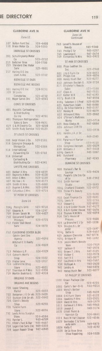1) Several decades of #NewOrleans data from the "Negro Motorist Green Books" and the "Simms' blue book and national Negro business and professional directory." Also, complete street address data from 1935-1979. (photo: 1961 Southern Bell Street Address Directory)