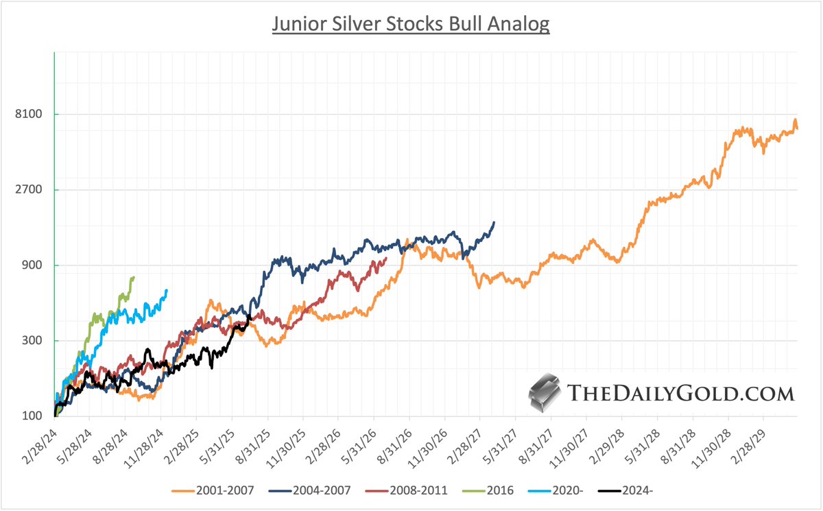 Usually that means gold stocks, juniors and Silver will perform worse than Gold.