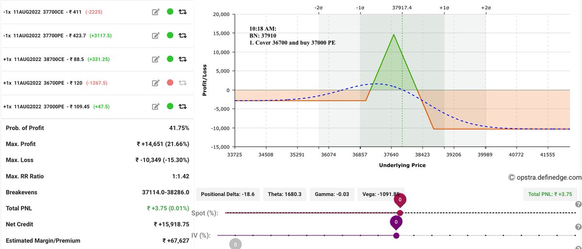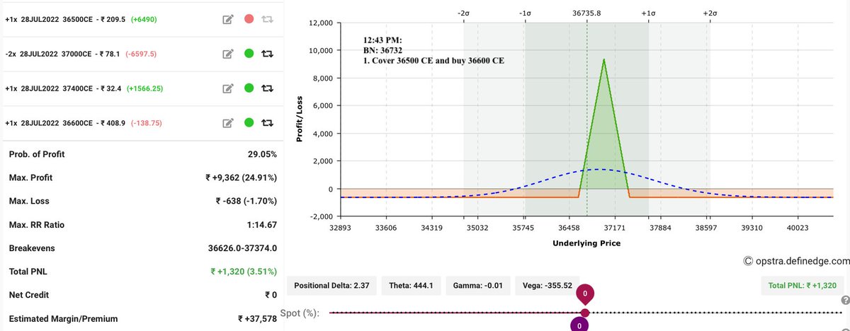 9:27 am: Created a strangle of 34500 pe & 36900 ce. Exited 36700 ce at minor loss. (BN around 35900 levels).
