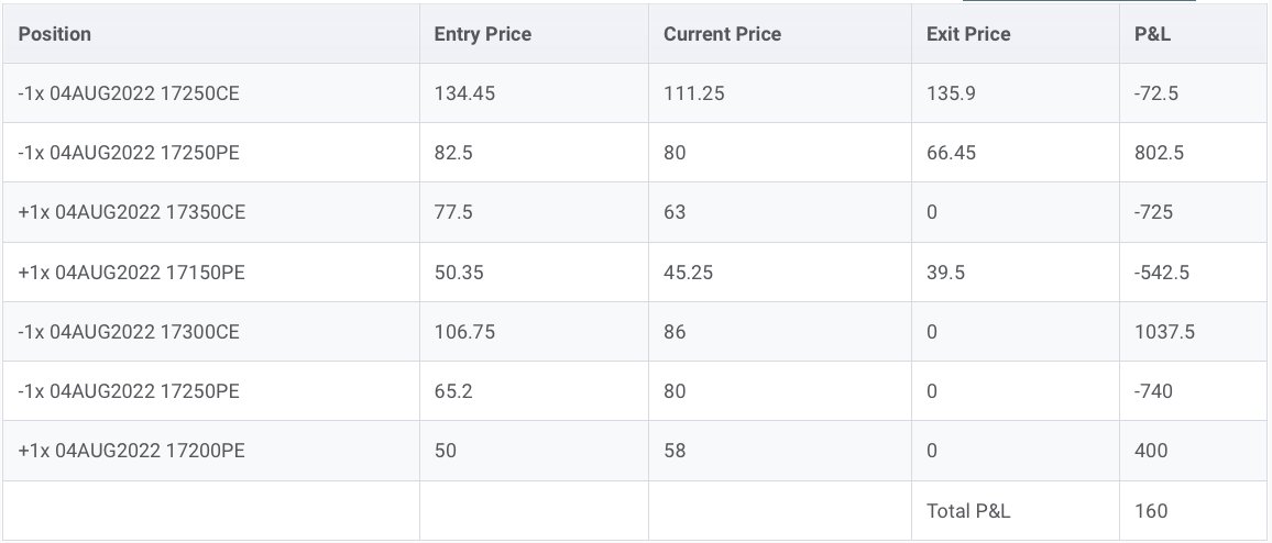 Shifted 17250 sell strangle to 17250 PE & 17300 CE (Iron Condor)