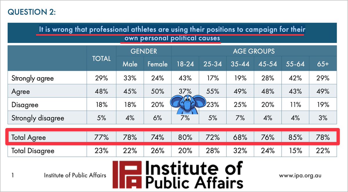 IPA poll, Sept 2025: 77% of Australians say athletes shouldn’t campaign for political causes.