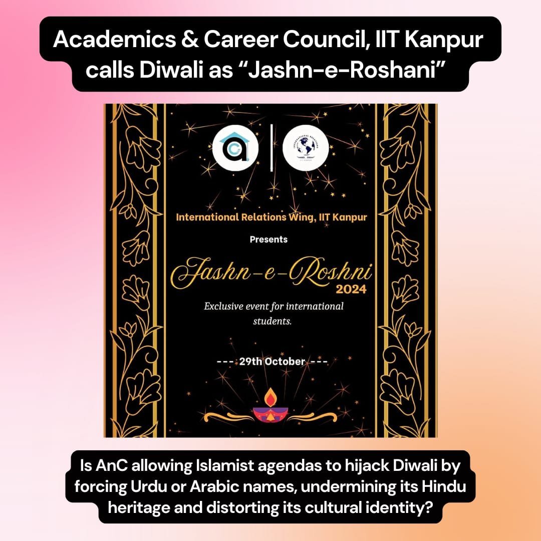 The Muslim Dean of IR, IIT Kanpur, @bushraiitk, has named the Deepawali event Jashn-e-Roshni. She has called @myogiadityanath a hooligan in the past and openly supported CAA Protests.