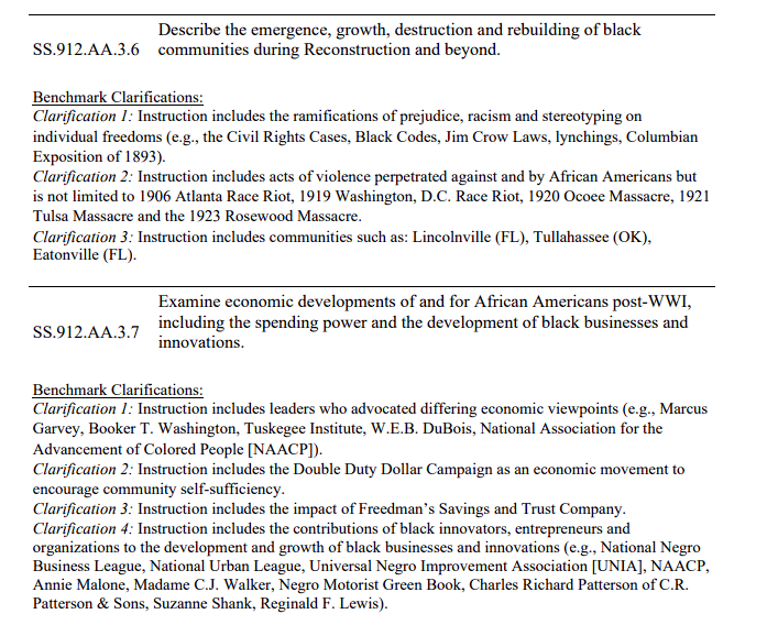 1. The intent of these standards is not to teach students that "some slaves 'had it good' by being taught trades" but to serve as the foundation for the BIGGEST social debate in civil rights post-Civil War.