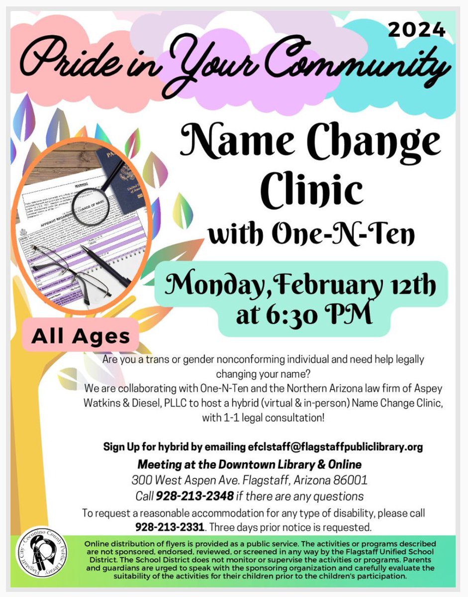 The poster shared at DeMiguel Elementary school was for an all-ages "Name Change Clinic," which promised to help minors change their legal name for their "transition."