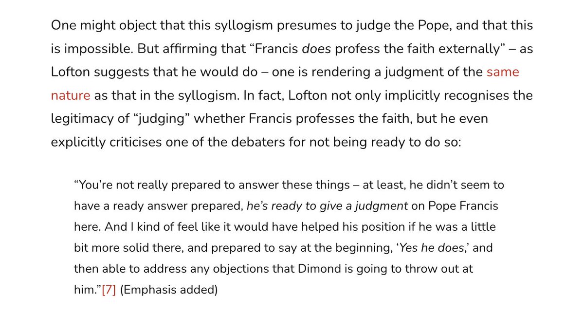 "Others, and they the highest Ultramontane theologians, hold that a Pope who teaches heresy ipso facto ceases to be Pope." Ibid 359. NB Newman says this in *defence* of the Church against Gladstone's idea of arbitrary papal rule. "Ultramontane" is not disrespectful here.