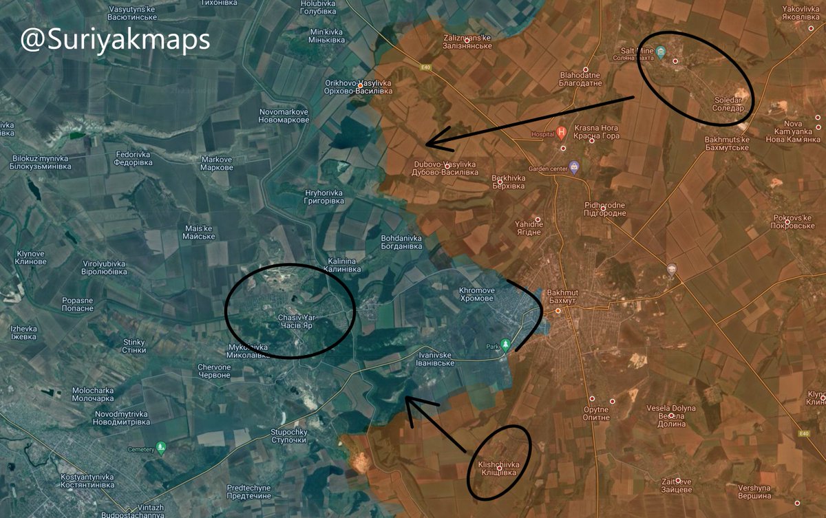 https://twitter.com/ThetiMapping/status/1643686701657669632Chasiv Yar entered the "danger zone" in late January when Russia took Soledar (Jan 16) and Klishchiivka (Jan 20). The fall of these two towns gave Russia important forward positions to flank Bakhmut and by extension Chasiv Yar, and put it within the range of close range mortars.